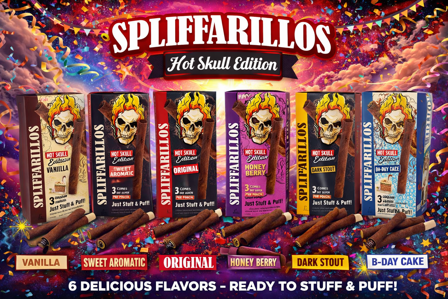 Tob Hot Skull Edition (Spliffarillos) 3 Cones 10CT (C24)
