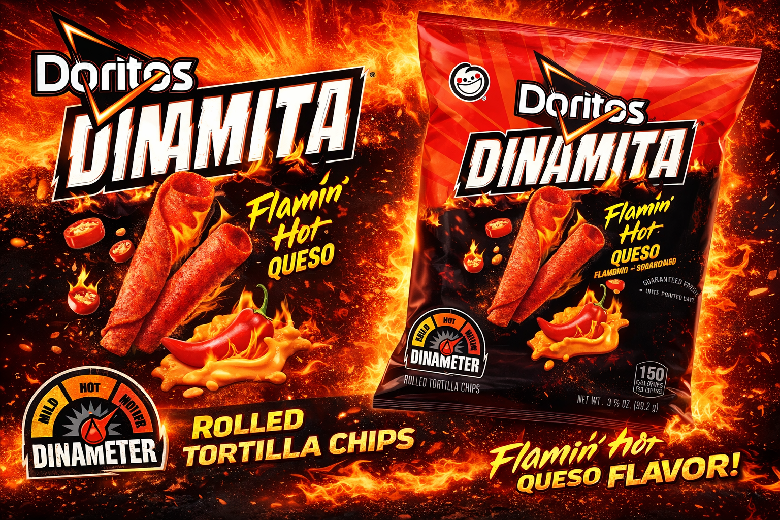 Chips Bag Doritos 3.5OZ 32CT Dinamita Flaming Hot Queso