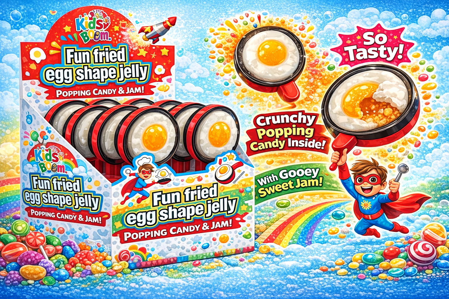 Cn Toy Boom Halal Candy Fun Fried Egg Shape Jelly 10CT (C8)