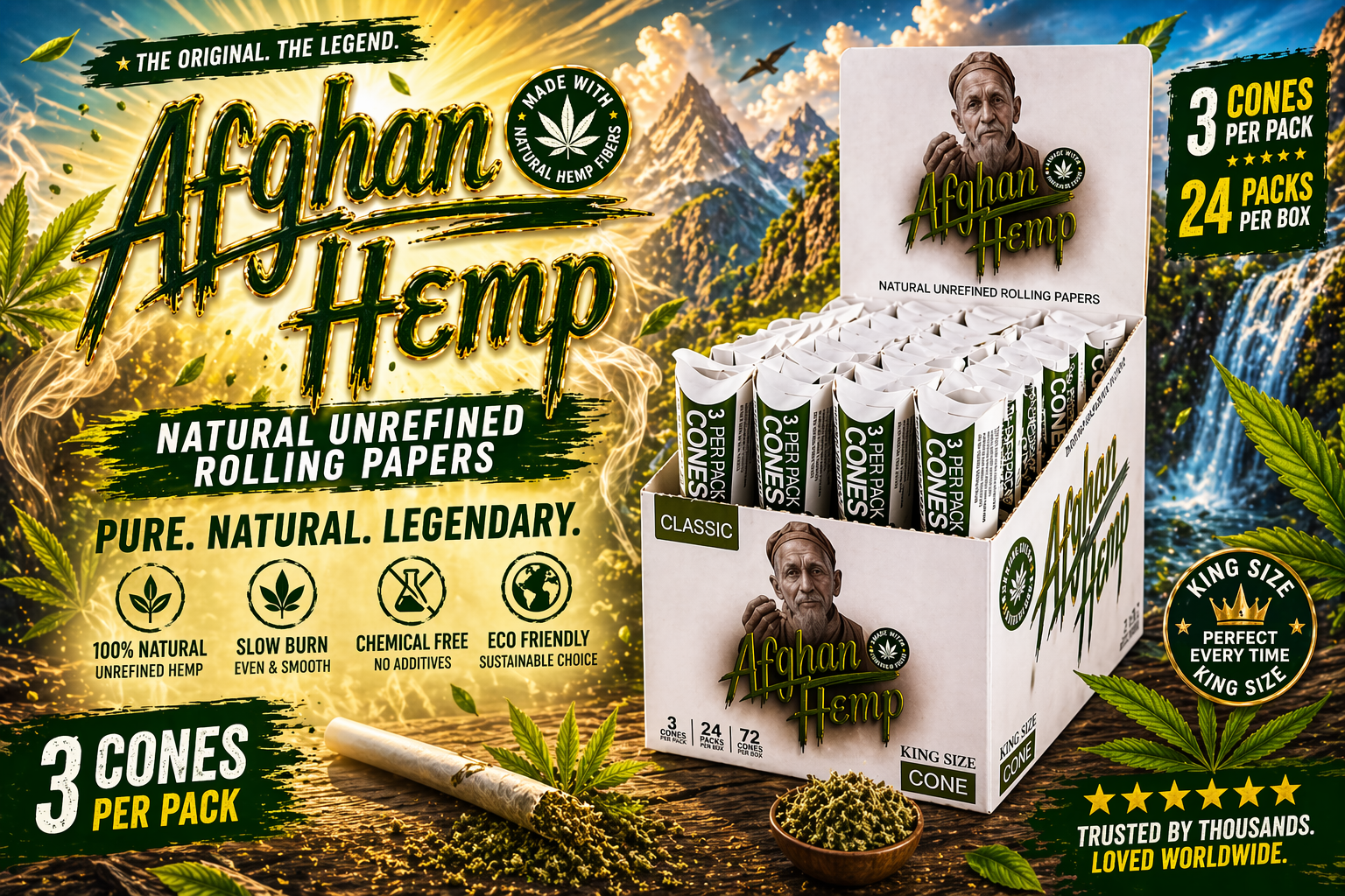 CP Afghan Hemp Cone Classic King Size 24CT/3 Cones