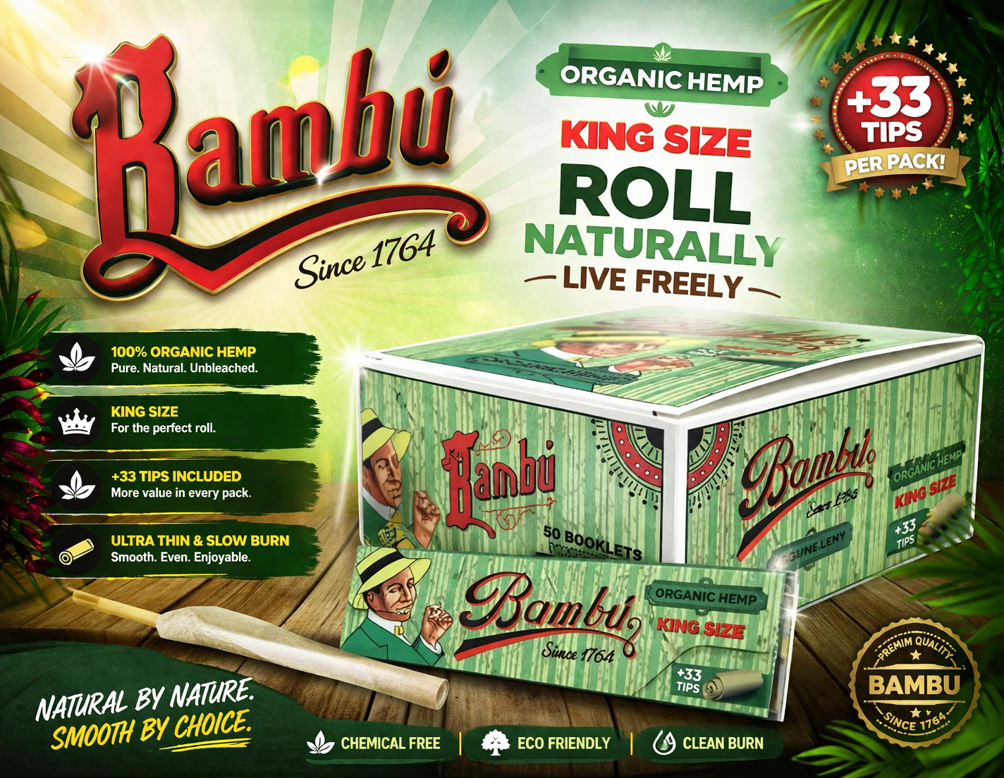 CP Bambu Organic Hemp King Size 50CT + 33 Tips (C40)