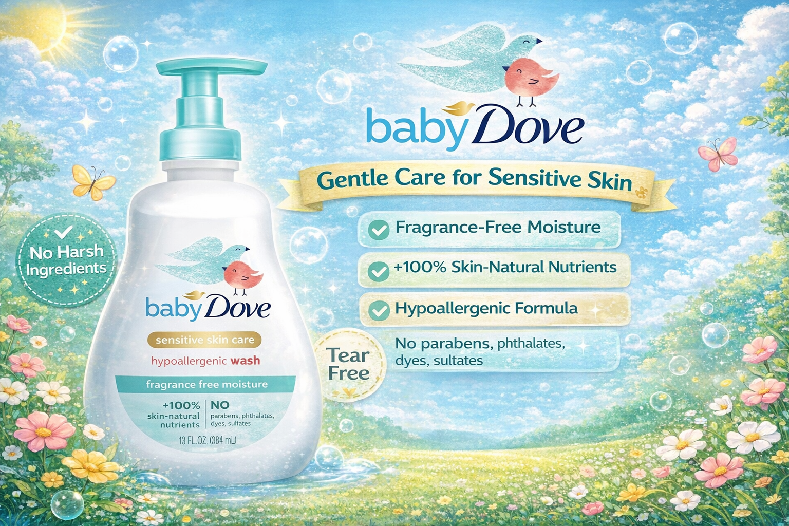 Dove Baby Sensitive Skin Care Body Wash 13.52OZ 1Ct (C6)