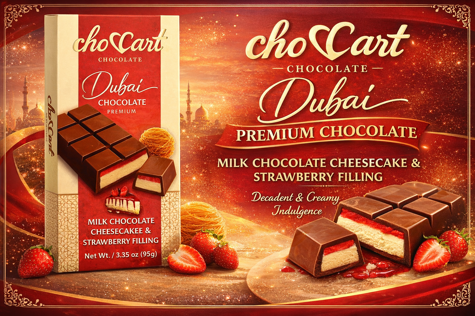 Dubai Chocolate Choccart Cheesecake And Strawberry Fruit 95G 12Ct (C6)