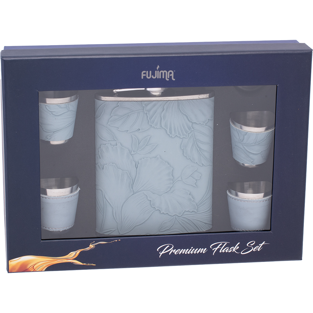 Fujima 8OZ Green Vegan Leather Stainless Steel Flask Set 2