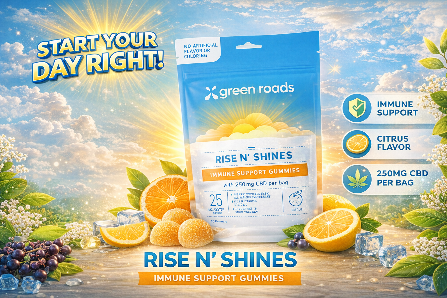 Green Roads Cbd Gummies 250Mg 10/PK 4CT Rise N Shines Citrus