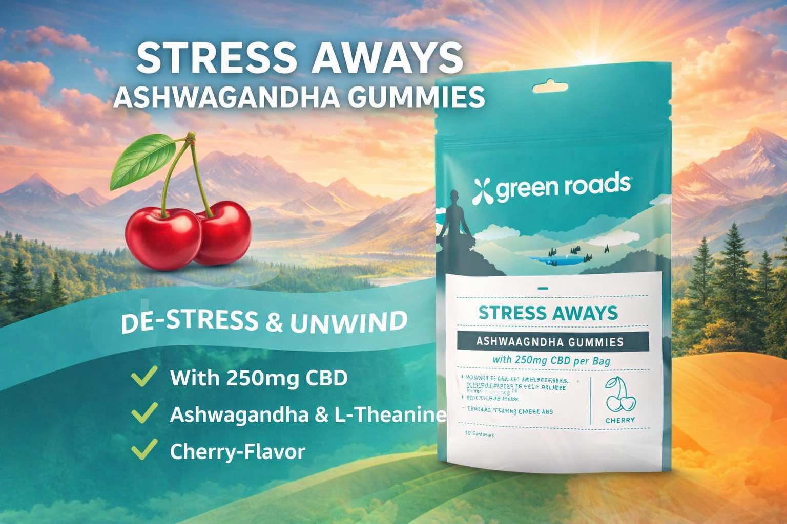 Green Roads Cbd Gummies 250Mg 10/PK 4CT Stress Aways Ashwagandha Gummies Cherry