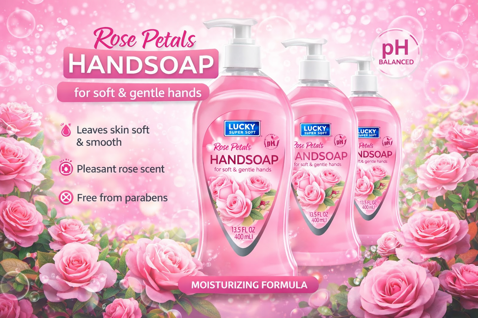 Lucky Liquid Hand Soap Rose Petals 13.5OZ 1CT (C12)