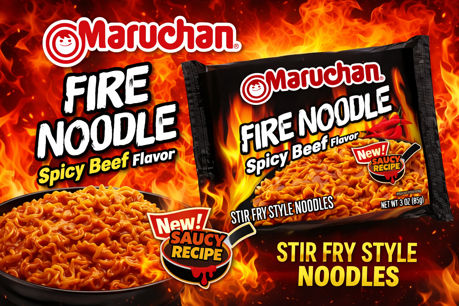 Maruchan Ramen Fire Noodles Spicy Beef 3OZ 22CT