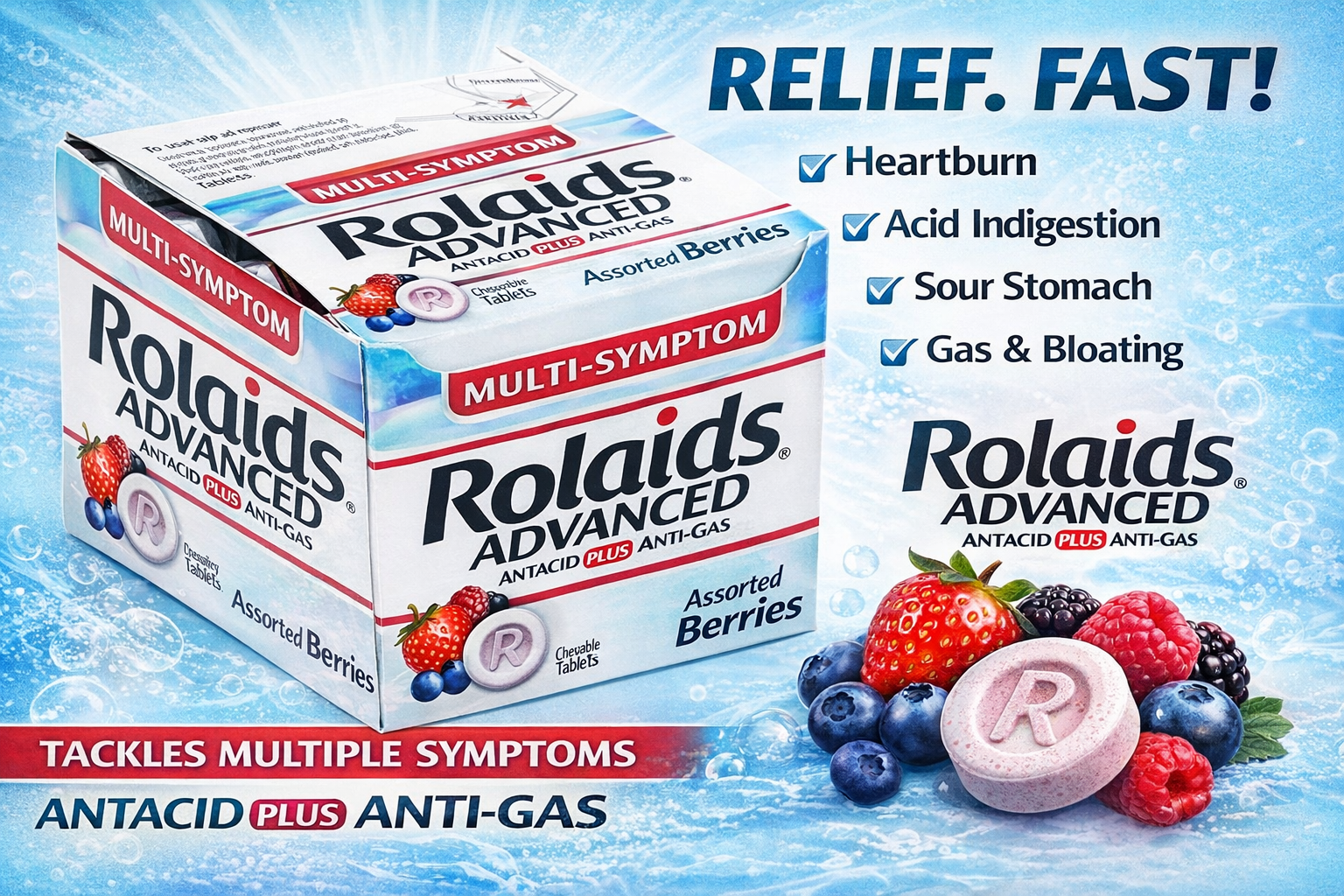 Med Rolaids Advanced Wild Berry 10 Tab/Roll 12CT (C24)