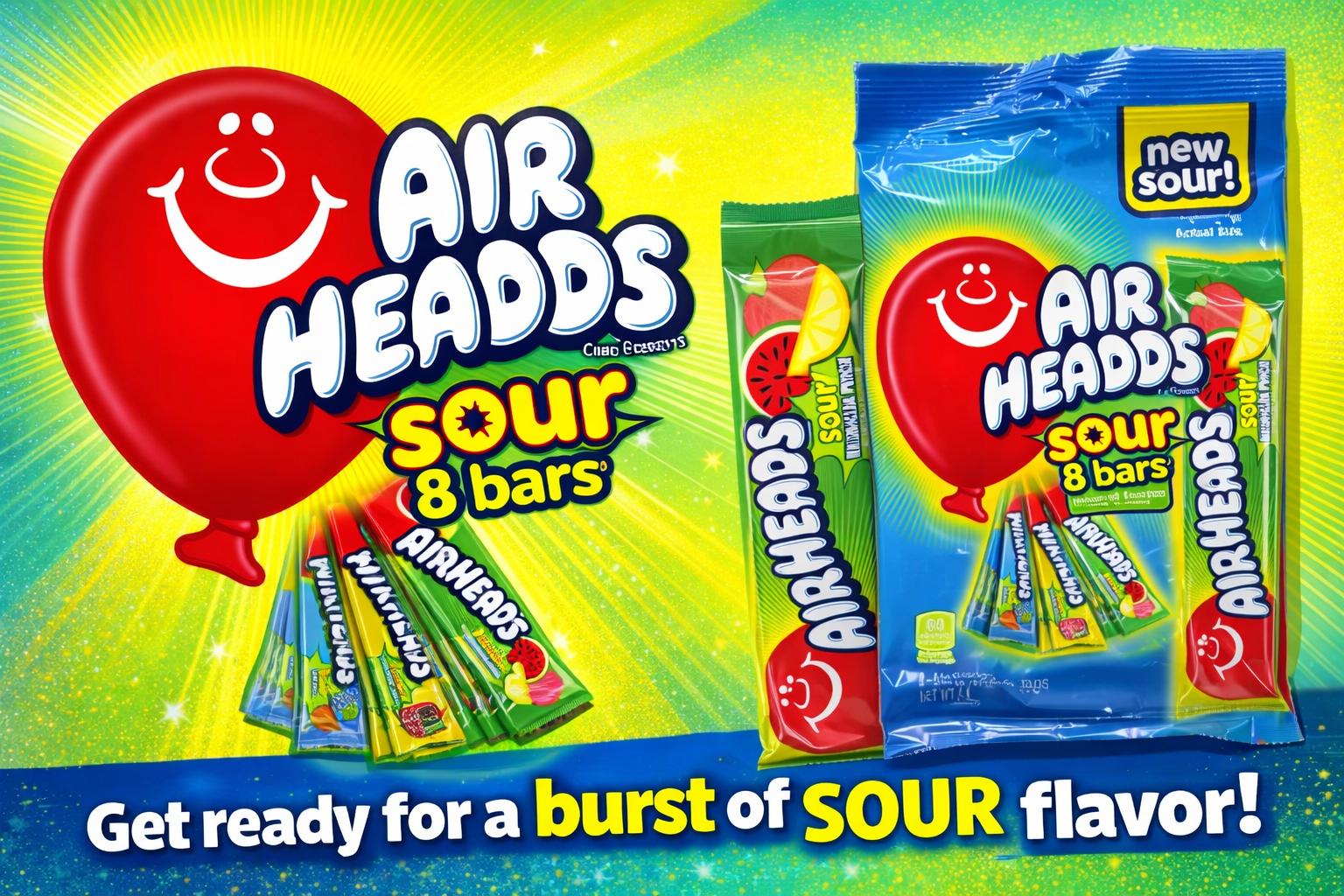 Peg Bag Airheads Sour 8 Bars 4.4OZ 1CT (C12)