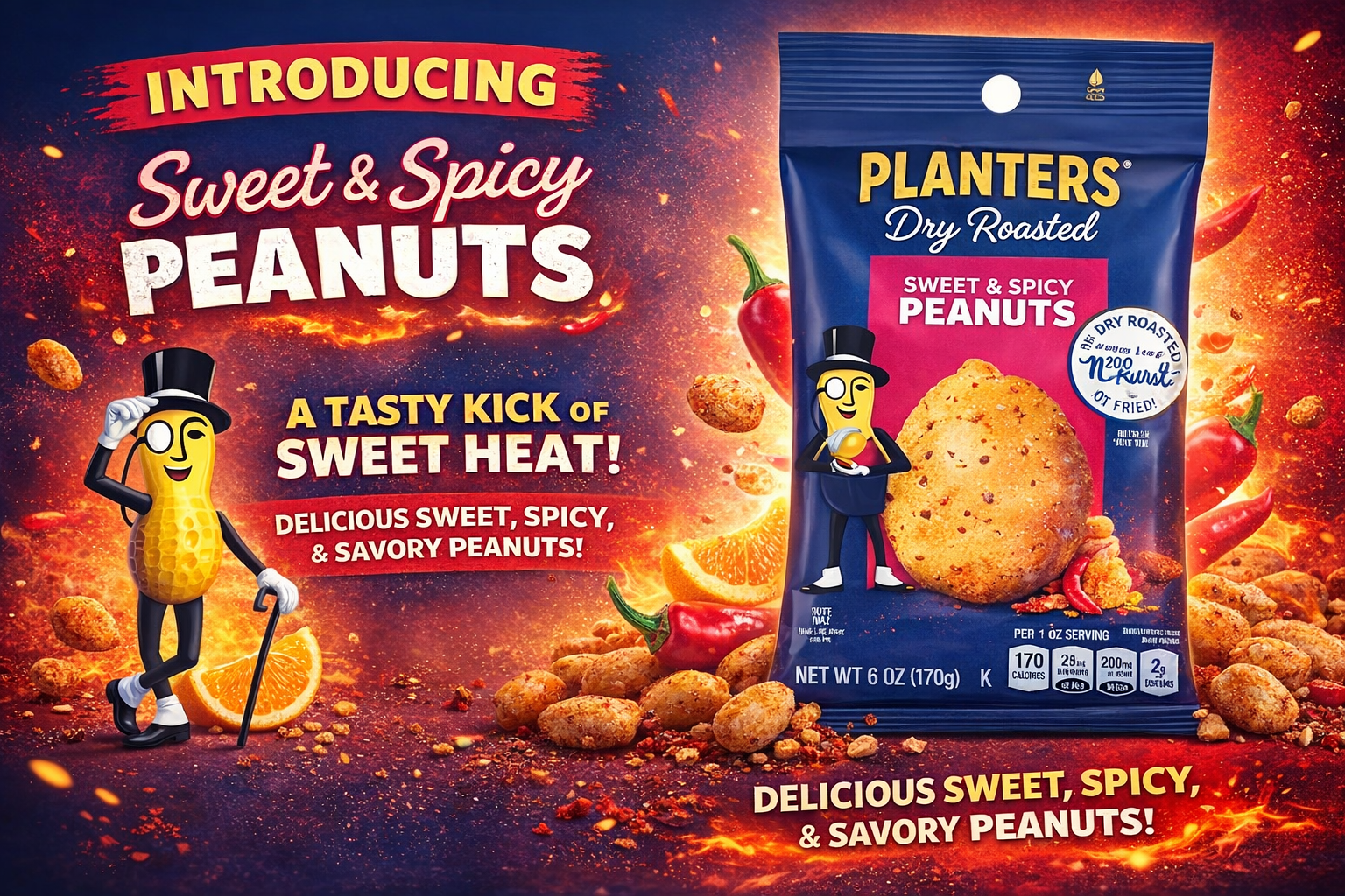 Planters 1CT Bag 6OZ Sweet And Spicy Dry Roasted Peanuts
