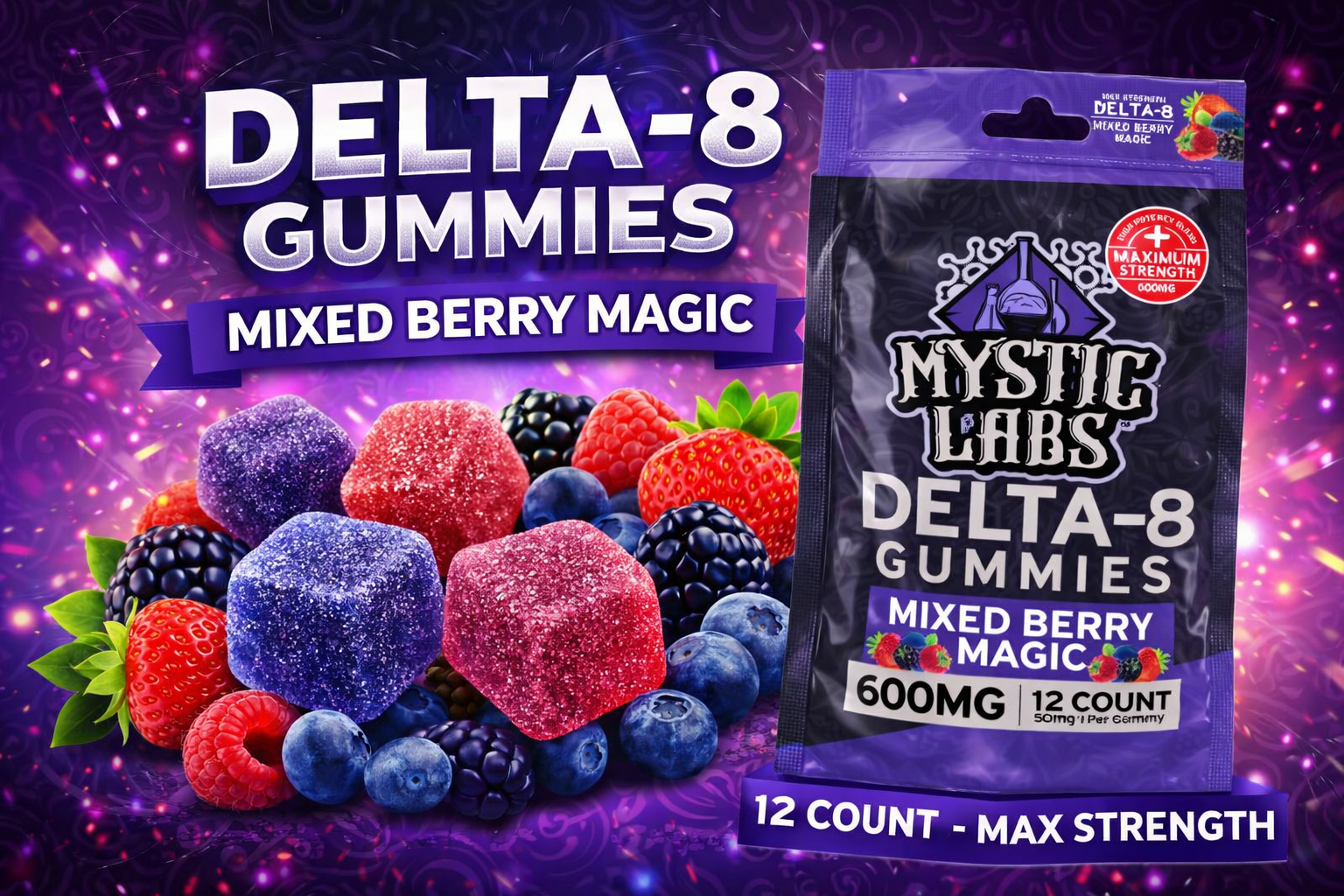 Vita Cbd Mystic Labs Delta 8 Gummies 600MG/12CT Pouch/ 6 Bags Per Box Mixed Berry Magic (C12)